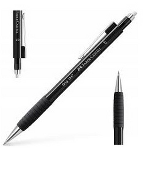 در مداد نوکی Grip 1347 فابر کاستل، محل قرارگرفتن انگشتان با لاستیک پوشانده شده است. این لاستیک نرم از فشار واردشده به انگشتان در حین نوشتن کم میکند؛ به همین دلیل استفادهی طولانیمدت از آن موجب خستگی انگشتان یا تغییر حالت آنها نمیشود؛ علاوهبراین، لاستیک از عرقکردن و لیزخوردن مداد نوکی در دست جلوگیری میکند. این ویژگی در کنار نوک مقاومی که با واردشدن فشار نمیشکند، از خطخوردن دست و به هم خوردن تمرکز جلوگیری میکند.زیر درپوش انتهایی این محصول، پاککنی با طول بسیار زیاد قرار گرفته است. از این پاککن میتوان برای پاککردن اشتباهات جزئی استفاده کرد. با یک چرخش کوچک میتوان پاککن را خارج کرده و طول آن را کم و زیاد کرد. گیرهی فلزی تعبیهشده روی بدنه، به کاربر امکان میدهد تا مداد نوکی را در لبهی کتاب و دفتر یا جیب خود حمل کند. البته که به دلیل مکانیزم فنری مداد نوکی، شما میتوانید نوک آن را بهراحتی در داخل بدنه پنهان کنید. با این کار نوک مداد نمیتواند جیب شما را کثیف کند.